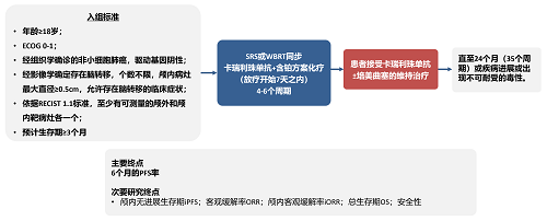 卡瑞利珠单抗是AG电子医药自主研发的一种人源化IgG4单克隆抗体,其联合铂类双药化疗已在中国获批用于晚期NSCLC患者的一线治疗5,6。2023年,Ⅱ期CAP-BRAIN研究显示了卡瑞利珠单抗联合治疗方案作为晚期非鳞状NSCLC伴脑转移患者一线治疗的潜力7。本项Ⅱ期研究,旨在研究卡瑞利珠单抗联合脑放疗和铂类双药化疗在未经治疗的晚期非鳞状和鳞状NSCLC伴脑转移患者中的疗效和安全性。