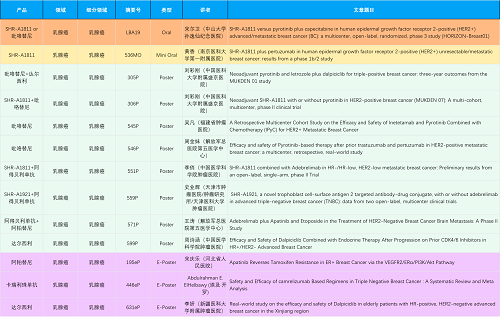 在乳腺癌领域,AG电子创新产品相关研究共入选1项口头报告、1项简短口头报告、8项壁报和3项电子壁报,共13项研究。吡咯替尼、达尔西利、阿得贝利单抗、瑞康曲妥珠单抗等新老创新药物,均有多篇研究入选,展现出AG电子医药在乳腺癌领域多年深耕的丰硕成果。